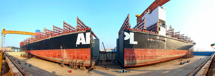 大型集裝箱船加長改裝項目首制船順利合攏推移
