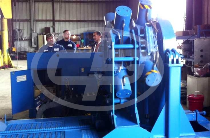 液壓擰扣機(jī)主要用于液壓油缸及油田拆裝套管接箍、油管接箍、抽油泵接箍、封隔器接頭、井下工具及鉆井工具等一些圓柱型螺紋聯(lián)接件。該設(shè)備主要由上卸扣主機(jī)、液壓系統(tǒng)、電控系統(tǒng)等三大主要部分構(gòu)成,并可根據(jù)工件特性進(jìn)行設(shè)計研發(fā)。
