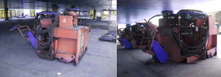 ③設(shè)備自帶液壓馬達(dá)行走功能,行走輪的液壓升降,前后驅(qū)動(dòng)均由設(shè)置在行走手柄上的按鍵控制,單人可輕松實(shí)現(xiàn)設(shè)備的行走和就位,同時(shí)設(shè)置有吊點(diǎn)和鏟齒孔方便門吊和叉車運(yùn)輸;